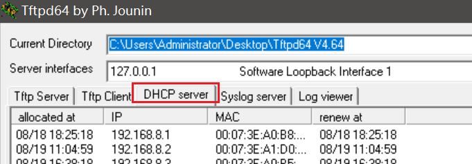 打开Tftpd64软件