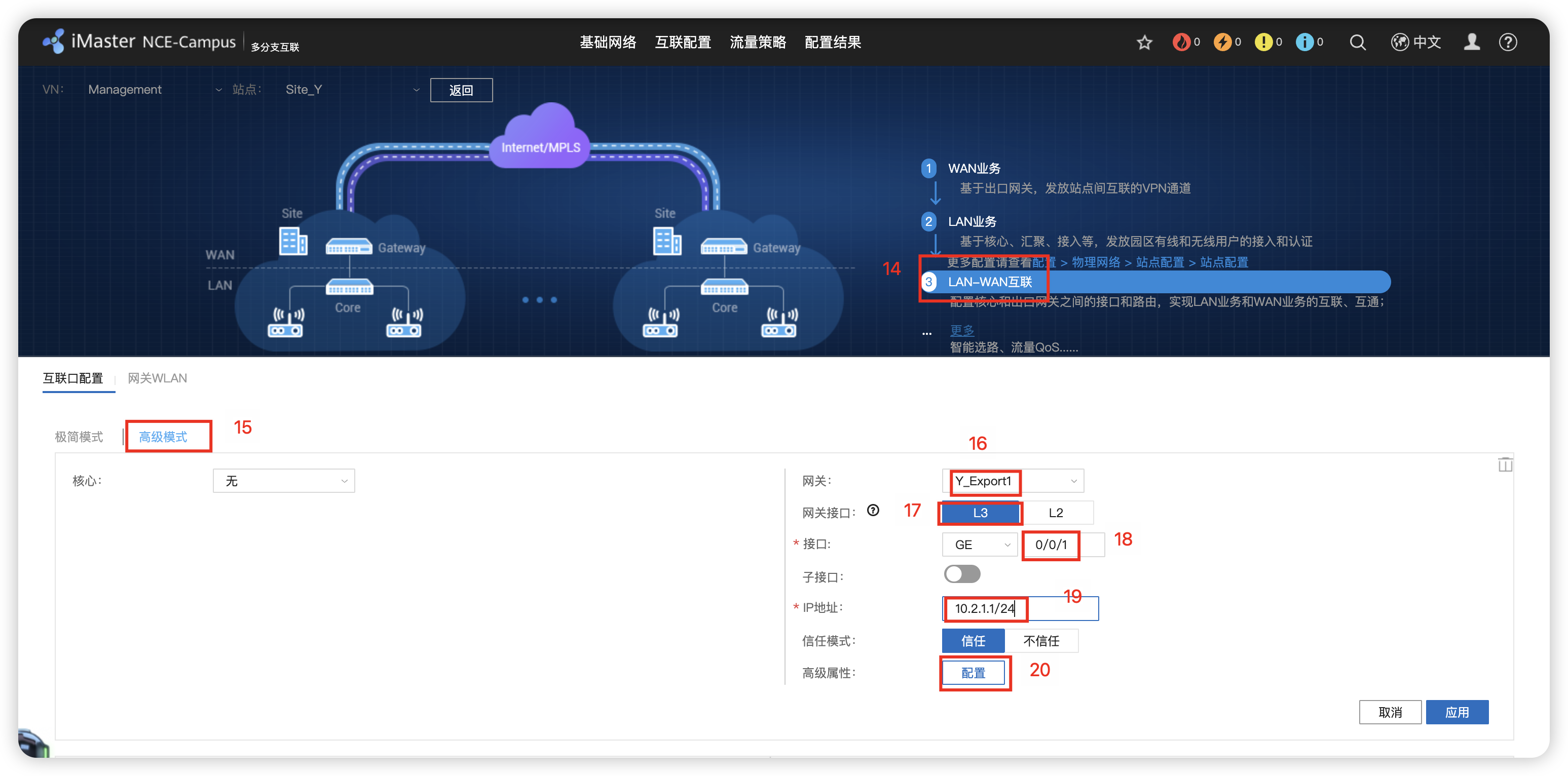 - Y园区:iMaster NCE-Campus SD-WAN 部署